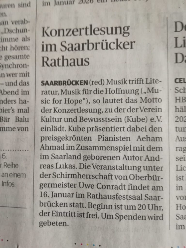 Konzert-Lesung im Rathausfestsaal Saarbrücken
