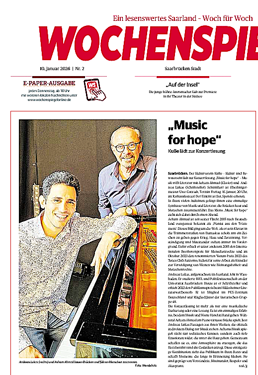Pianisten Aeham Ahmad und der Gefühls- und Gedankenwelt des Autors Andreas Lukas.